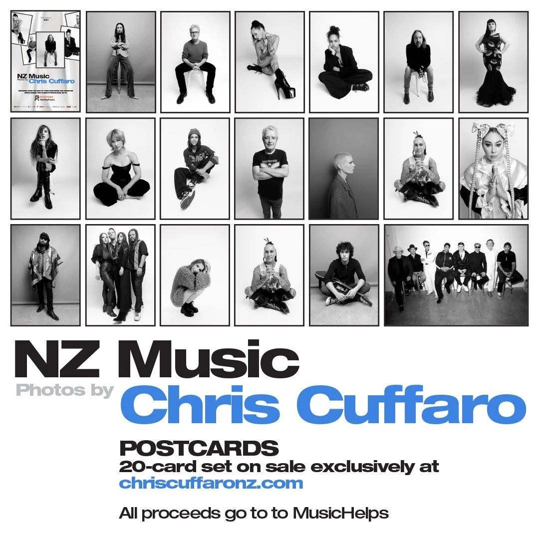 “It was a thrill to be photographed by Chris, and to hear all about him growing up in Northern California and blagging his way into every gig he could. I was too busy laughing at his stories to remember to do Blue Steel for him - which was just as well. I’m thrilled, too, that he’s donating the proceeds from his auction of these very cool NZ Music photos to MusicHelps - a charity dear to my heart - that helps get music out into the community to heal and change lives, while also looking after Aotearoa/New Zealand music workers”